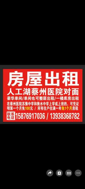 人工湖蔡州医院对面单间出租