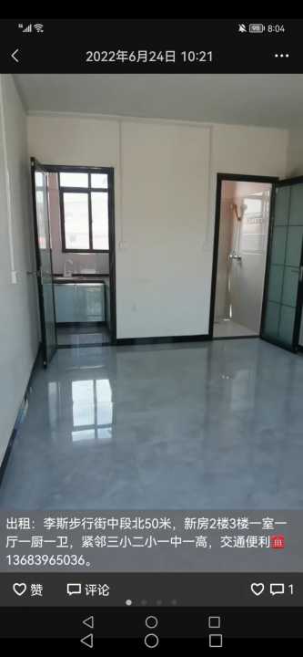 出租:李斯步行街中段北50米,新房2楼3楼一室一厅一厨一卫,紧邻三小二小一...