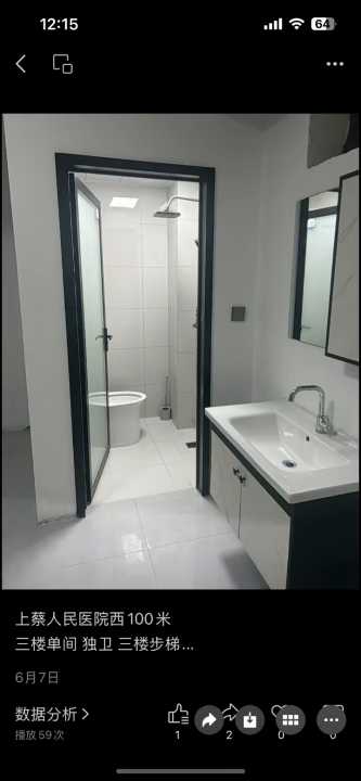 房屋出租!蔡都大道。人民医院西边200米蔡都二巷 三楼 年租 月租 单间出租独立卫生间!带洗衣机